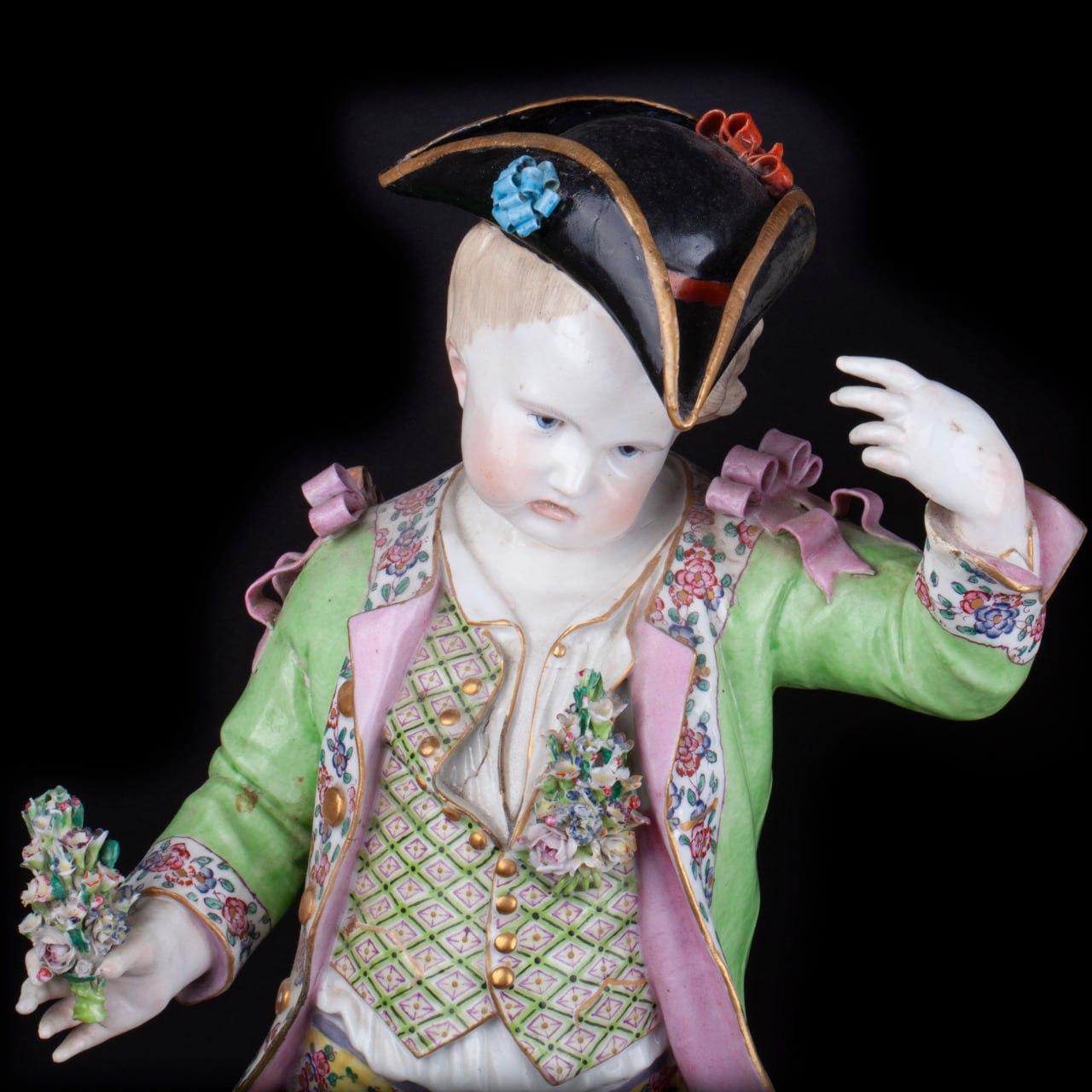 Hiigelsuur paar Meissen-stiilis portselanfiguure: kõrgus 40 cm, aluse läbimõõt 17 cm. Käsitsi maalitud, kuldse siseviimistluse ja rokokoo-detailidega.