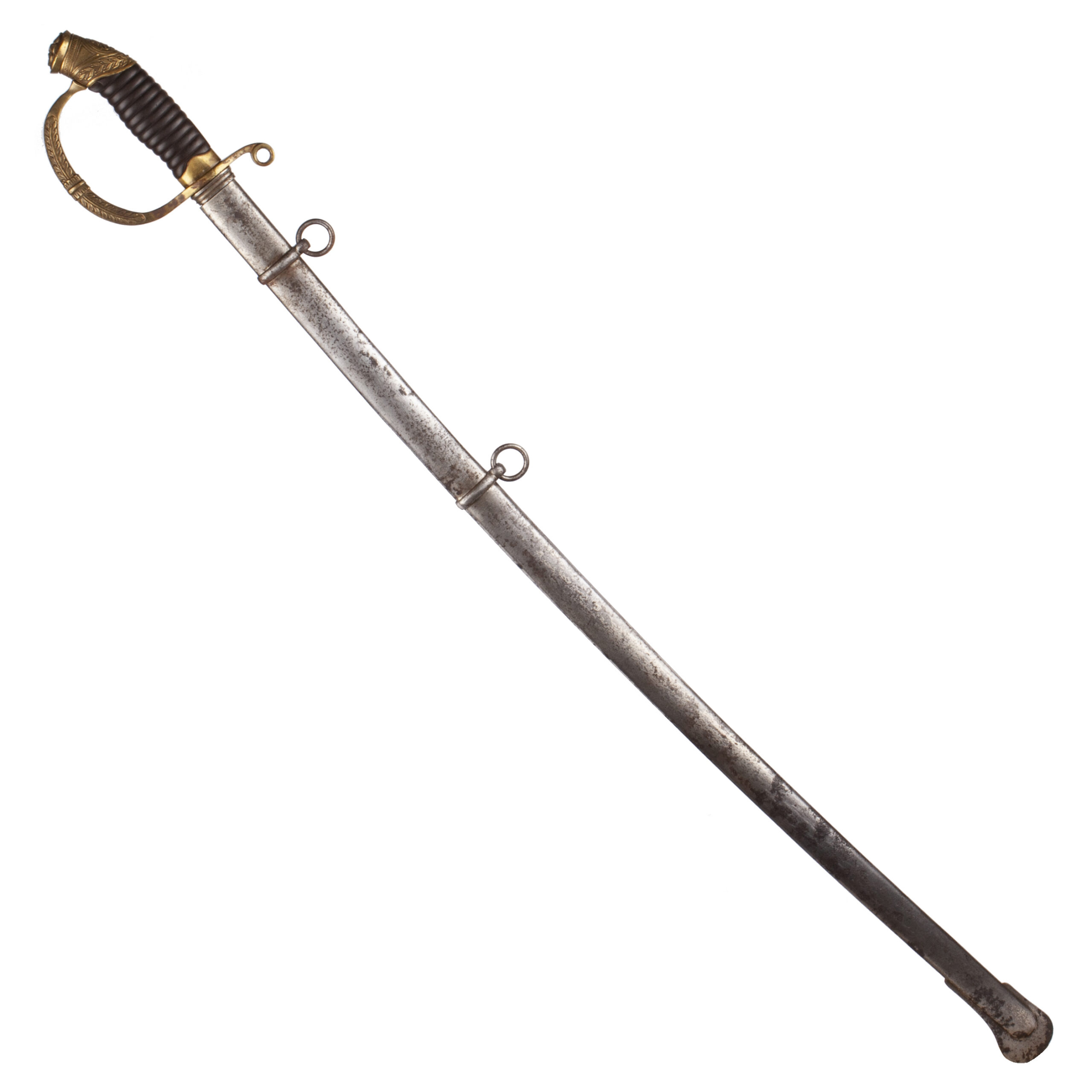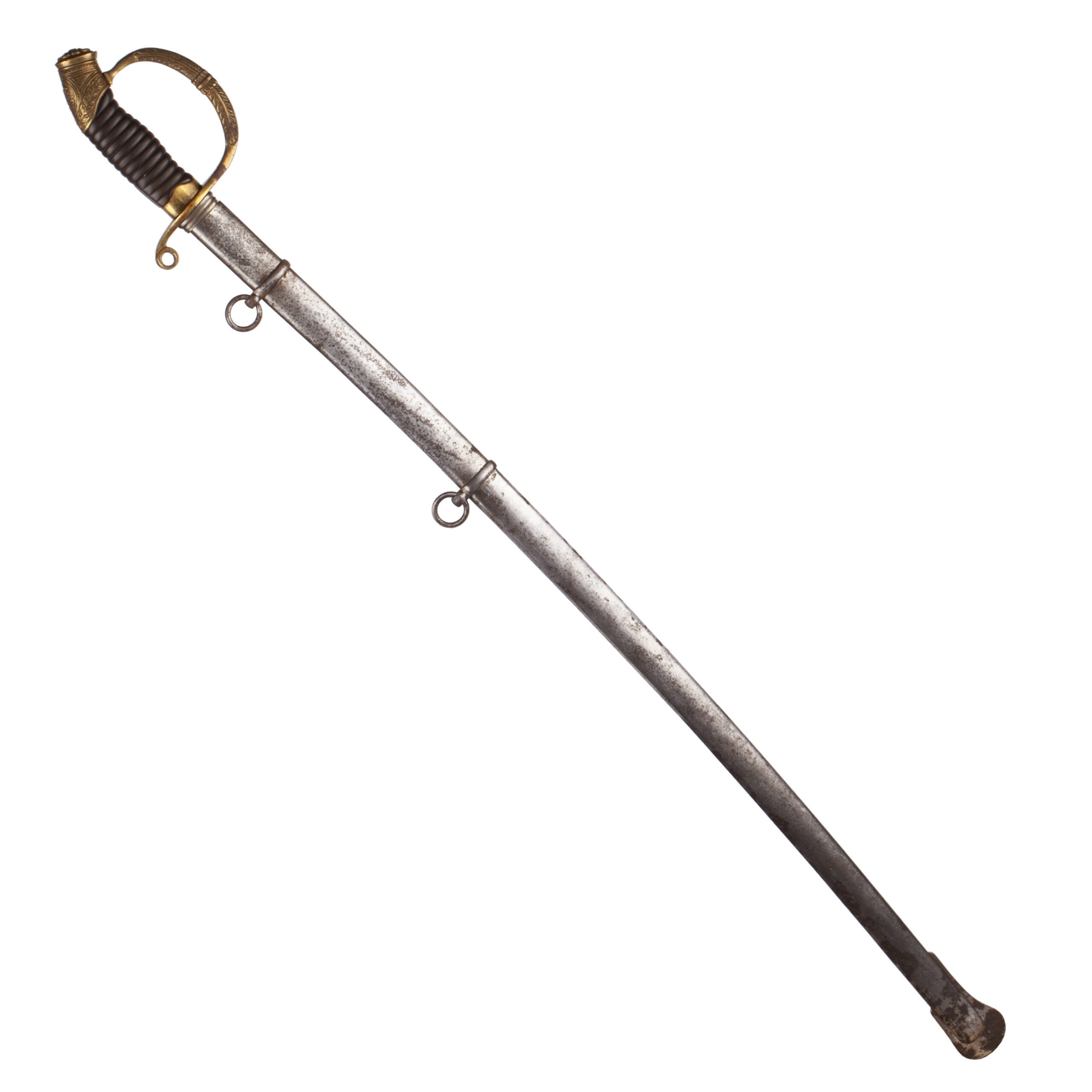 Рукоять из бакелита, выполненная в классической форме шашки с клювовидным навершием, сохранила оригинальную фурнитуру и покрытие. В комплекте идут оригинальные металлические ножны с двумя кольцами подвеса, с естественной патиной, но полностью комплектные и прочные.